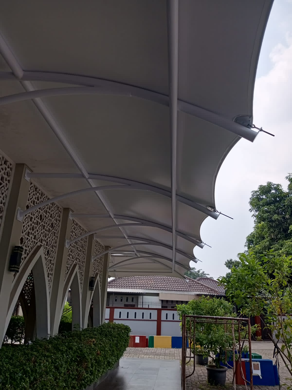 - Lembaga Pendidikan: Pemasangan tenda membran untuk fasilitas sekolah atau kampus, seperti lapangan olahraga atau area terbuka lainnya, guna memberikan naungan bagi siswa dan staf.