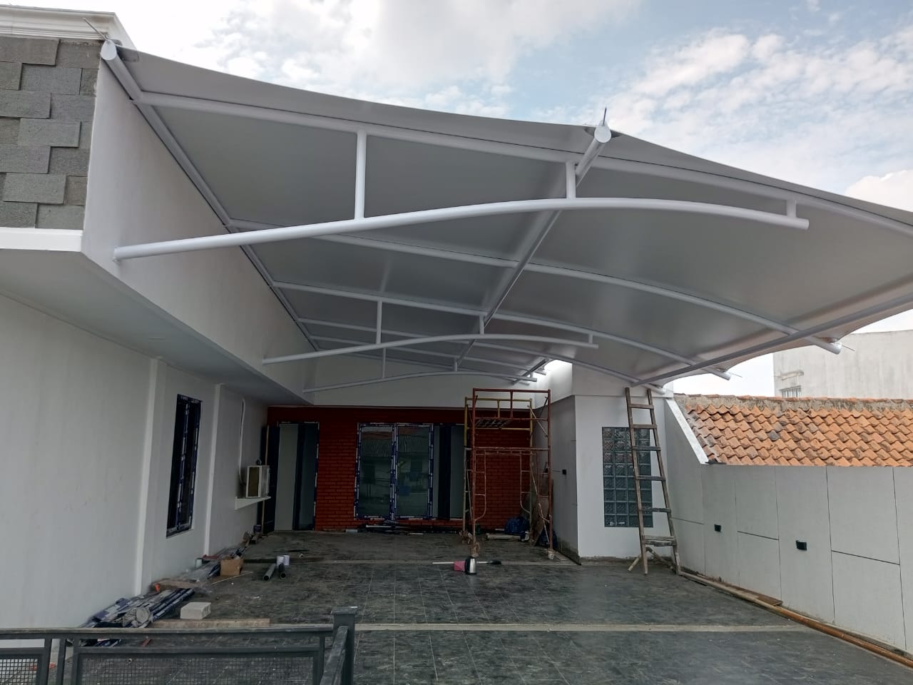 - Perorangan: Membantu pelanggan pribadi dalam pemasangan tenda membran untuk area taman, kolam renang, atau carport.